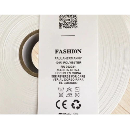 - Giysilerdeki yıkama talimatlarının basıldığı etiketlik kumaş, Barkod yazıcılarda baskıya uygun olması için üzerinde özel polyamid kaplama vardır. Ağır yıkamaya giren giysiler için uygundur. Özellikle blue jean üreticileri talep eder.